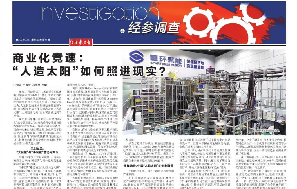 媒体聚焦 |《经济参考报》聚焦核聚变产业发展及瀚海聚能为代表的商业企业技术探索