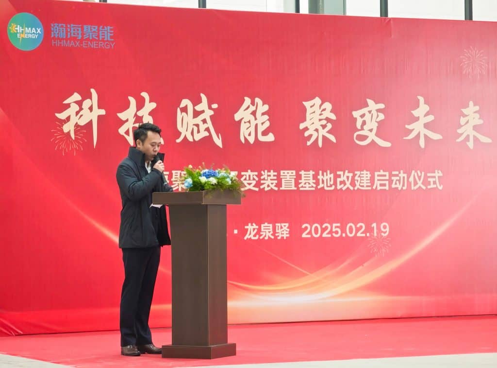 2025年2月19日上午,瀚海聚能聚变装置基地改建工程启动仪式在龙泉驿隆重举行,各级领导、瀚海聚能董事长项江及全体员工、行业嘉宾、合作伙伴等出席仪式,共同见证了这一重要时刻。 自成立以来,瀚海聚能始终专注于直线型场反位形聚变技术的研发与创新。在这条充满挑战的道路上,我们已经取得了阶段性的重要成果,为今后的工程化实践奠定了坚实的基础。 启动仪式上,瀚海聚能董事长项江进行了致辞。他简要介绍了公司目前的研发成果,对各方的支持表示感谢,并对全体员工给予鼓励与肯定。