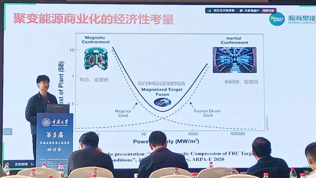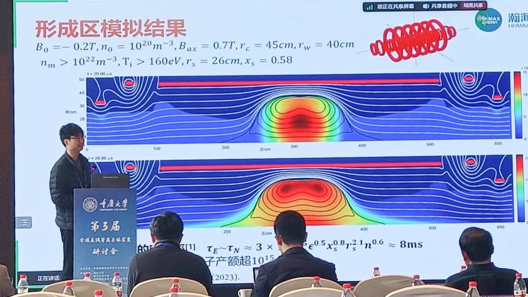 研讨会上,瀚海聚能针对“瀚海场反位形聚变装置的研制与应用前景”作了报告,介绍了瀚海场反位形聚变方案物理和工程技术基础、形成区装置设计概念、第一代中子源装置、聚变能源商业化的经济性考量与公司发展战略等。