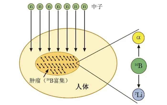 图:硼中子俘获疗法基本原理示意图