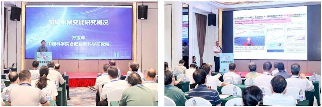 会议开幕式致辞后,来自中国科学院合肥物质科学研究院的万宝年院士就磁约束聚变能研究概况进行了精彩的报告,西南交通大学聚变科学研究所所长许宇鸿展示了中国首台准环对称仿星器(CFQS)的研究进展,核工业西南物理研究院聚变科学所所长钟武律也对中国环流器三号装置与实验进展作了介绍。