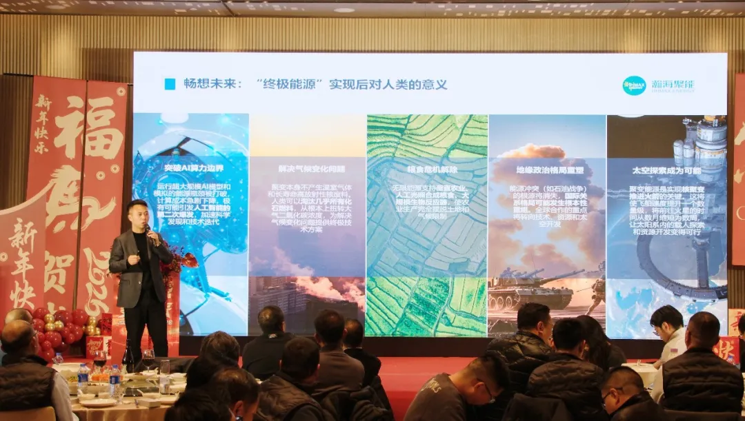 万象启新,共筑瀚海未来 整场晚会,既有对过往拼搏的致敬,也有对未来征程的展望。回首2025,我们以坚实的步伐,从实验室的方寸之间,走向宏伟的工程丰碑,让世界为之瞩目,这份成绩,源于对终极能源梦想的坚持。展望2026,我们继续以更清晰的商业路径,推动聚变之光照进现实。